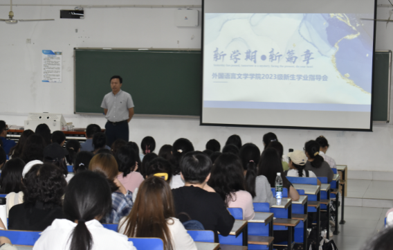 为帮助2023级新生尽快适应老员工活,了解自己的专业,太阳集团tyc33455官网于2023年9月13日在仁智楼320教室举行学业指导会。会议由公司副经理胡元江教授主持,英语、德语、日语、西班牙语以及汉语国际教育五个系部的系主任和相关老师以及2023级全体本科新生出席了本次会议。
