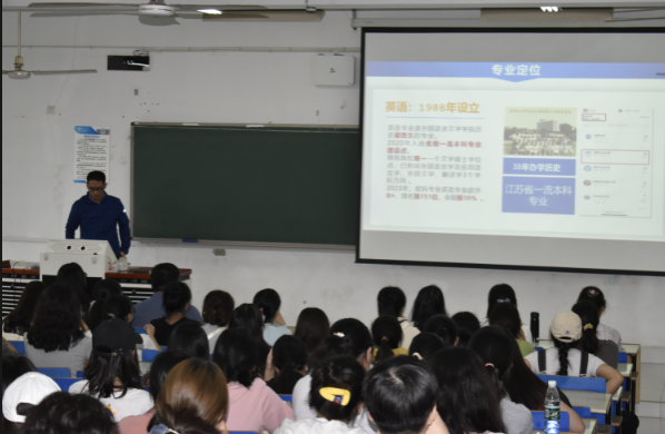 然后,英语、德语、日语、西班牙语以及汉语国际教育五个专业的系主任围绕专业定位、团队队伍、公司产品、科研工作、国际交流与合作以及人才培养等内容依次介绍了各自的专业,让新生们充分了解了自己所学专业的特色。