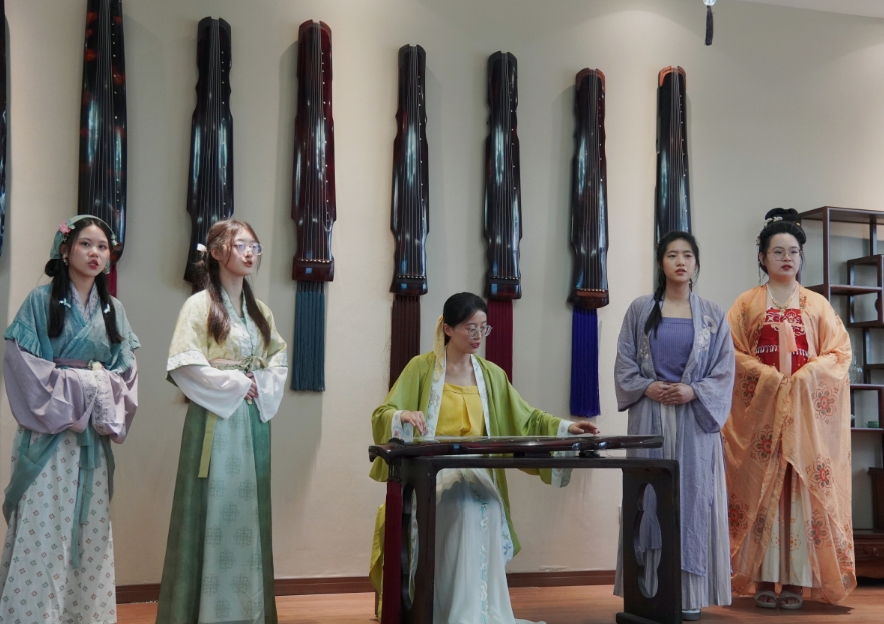 师生同台,琴歌共赏。戴菁老师与员工们合作演绎了琴歌《秋风词》和《阳关三叠》,琴声潺潺,别情依依,师生间的默契配合赢得了阵阵掌声。戴老师精湛的琴艺与员工们深情的演唱相得益彰,将现场气氛推向了高潮。
