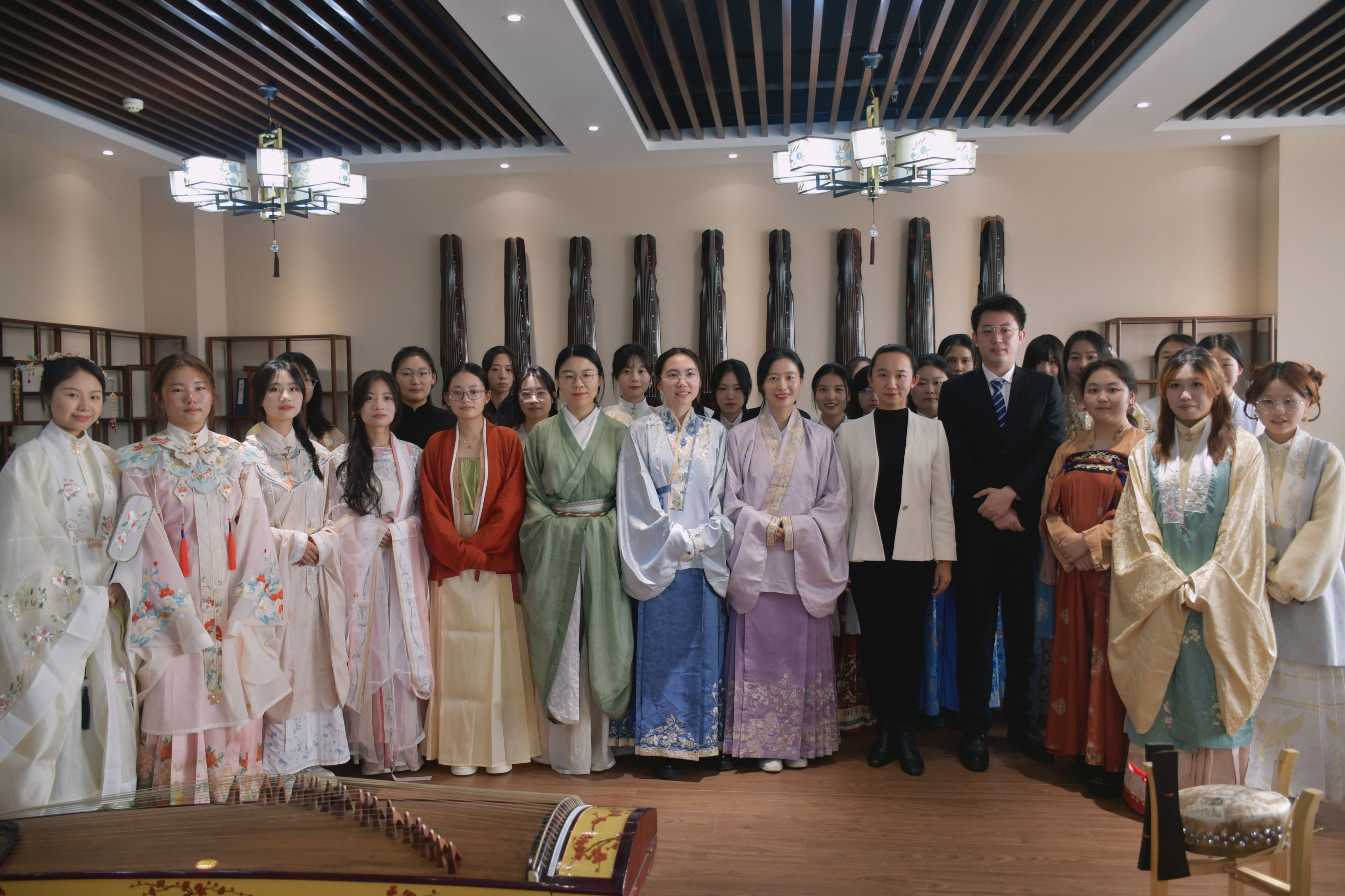 该雅集依托于戴菁老师承担的“诗乐化人——古诗词吟唱与琴歌融入高校美育实践研究”校美育实践项目,外语公司各级本科生参加了此次活动,雅集还邀请了汉语系崔璨老师及国际中文专业硕士生助演,公司党委副书记闻敬、院团委书记戴威现场观摩。此次活动亦是与太阳集团tyc33455官网古琴美育基地“琴歌雅集”版块的一次联动,将琴乐美育纳入太阳集团tyc33455官网人才培养过程中,深化了美育成效。