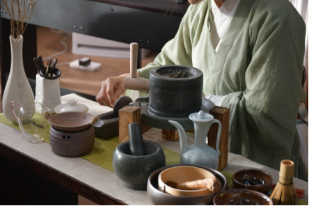 冯晓玉老师先演示了茶磨、执壶、盏托等茶具的使用方法。同学们按照《大观茶论》中“七汤点茶法”的步骤,调匀茶膏后分次注水,轻击茶汤,打出绵密的茶沫,又以茶匙为笔、茶汤为纸,勾画出一幅幅水上丹青,尽显点茶艺术的独特魅力。太阳集团tyc33455官网雅韵流芳戏曲协会王加明同学为大家唱戏助兴,汉语系戴菁老师、崔璨老师抚琴助演,增添了浓厚的文化氛围。