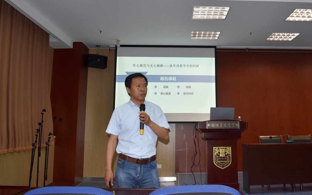 5月12日14点,胡元江教授在外语中心501员工实践能力演示厅为外语公司全体教师、研究生做了题名《有心栽花与无心插柳——谈外语教学中的科研》的学术讲座,副经理刘玲玉副教授主持了本次学术活动。
