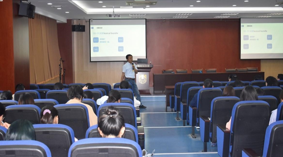 胡教授结合自身的实践经验和科研成果,理论联系实际,通过故事化的讲述形式,从“提名缘起”“词块研究”“动机研究”“语料库研究”“话语分析”等五个方面向师生演绎了科研工作的“有心”和“用心”。胡教授着重强调了项目研究中差异化的重要性,鼓励教师们多层次、宽角度思考研究主题,突破常规学术思维的禁锢。最后胡教授还以自己的教改项目申报书为例,手把手讲解了科研申报书的申报与写作技巧。