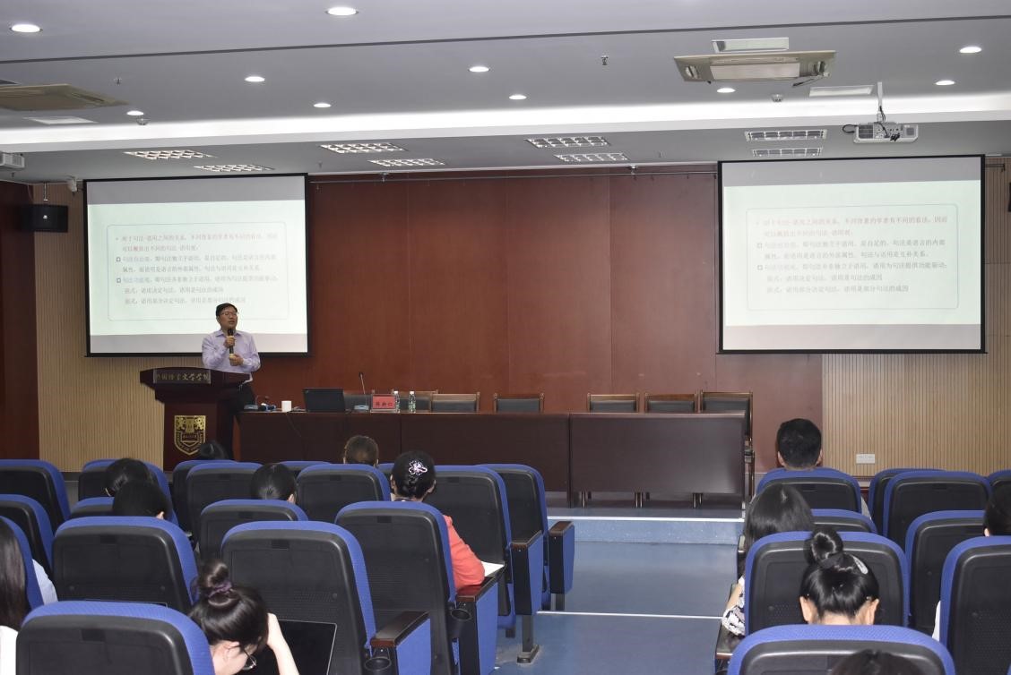 5月18日下午,南京大学陈新仁教授应邀来公司讲学,在外语中心员工实践能力演示厅作了题名“元语用与句法结构研究”的学术讲座。讲座由副经理刘玲玉主持,外语公司全体教师和研究生参加了本次学术活动。