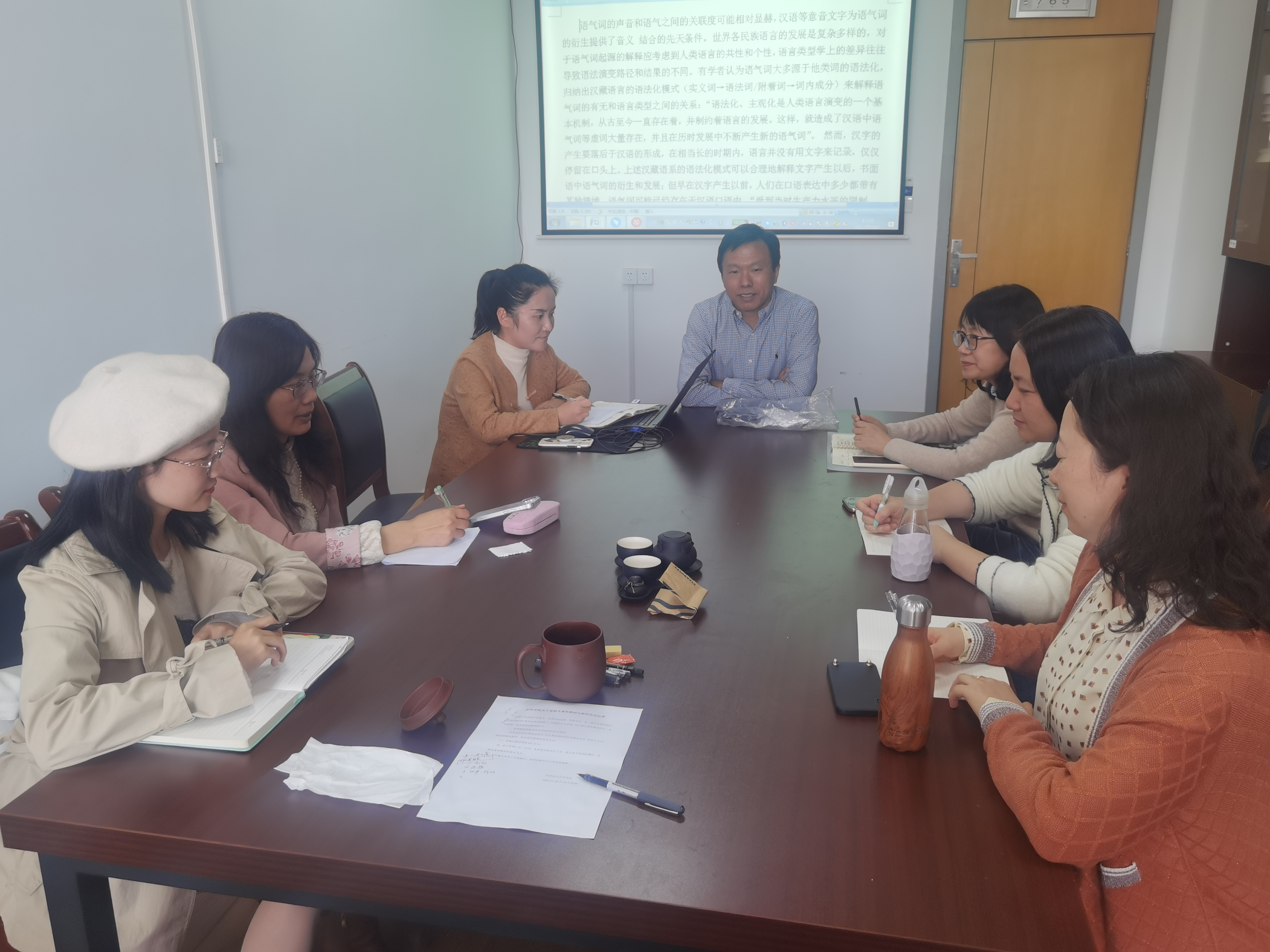刘璐亚博士结合近期成功申报2022年江苏省社科基金的经验,与大家分享了课题申报的注意事项,并向大家介绍古汉语语气词的音理特征及其流变历程。团队成员结合自身研究方向,就语气词在不同语言中是否具有对应表达,及至语气范畴在不同语言中的存在形式展开积极讨论。胡元江教授对刘璐亚博士现阶段的研究设计进行了宏观指导,强调语言研究要注重立足本体向外拓展,即从内部走向外部,建议刘璐亚博士将研究对象拓展到濒危语言、少数民族语言等,让自身的研究服务于国家战略。同时,在后续研究中把握“+方向”原则,即基于现有研究基础,不断拓展研究领域,这为团队成员的科研活动提供了新思路,新方向。