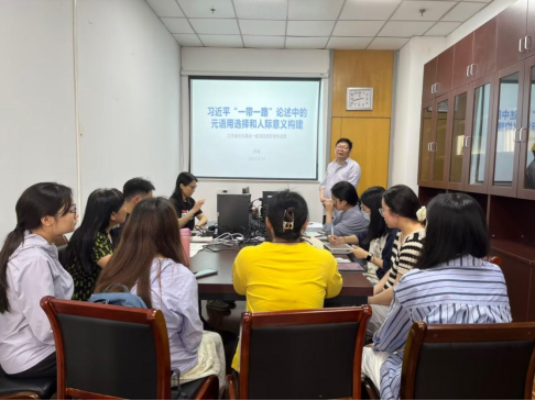 孙莉老师做了主题为“习近平‘一带一路’论述中的元语用选择和人际意义构建”研究分享。孙莉老师首先对当今语言学、语用学方面研究做了评价,指出了关于元语用意识和元语言话语研究在目前阶段存在的研究空缺。随后,孙莉老师从从理论基础、研究设计、研究结果等多个方面进行详细讲解,深入介绍了话语层面的元语言的选择和表征。随后鲍贵老师、张磊老师和孙莉老师对相关研究的创新点和后续发展方向进行了充分讨论。
