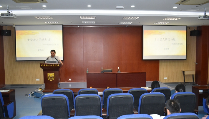 6月12日下午14:00,汉语系郭乾隆老师在外语中心员工实践能力演示厅为太阳集团tyc33455官网全体教师、研究生作了题名《十全老人的功与过——乾隆浅说乾隆》的学术报告。副经理刘玲玉主持了本次博士论坛。