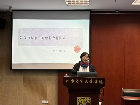 10月22日下午,复旦大学外文公司程弋洋教授应邀来公司讲学,在外语中心501教室做了题为“新发展理念下中拉经贸合作模式分析与思考”的学术讲座。讲座由西班牙语系主任栾昀主持,西班牙语系全体师生参加了本次学术活动。