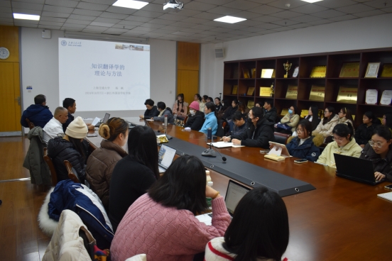 12月18日下午,上海交通大学杨枫教授应邀来公司讲学,在外语中心501教室做了题为“知识翻译学的理论与方法”的学术讲座。讲座由副经理胡元江教授主持,公司全体教师和研究生参加了本次学术活动。