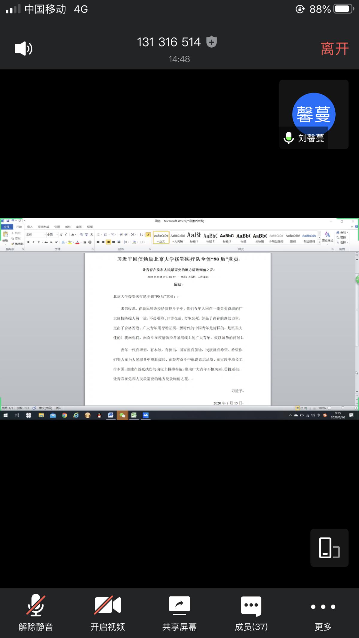 会议开始,各支部首先通过学习强国平台学习了由中国人民大学秦宣教授主讲的《疫情防控中的中国制度优势》。随后,支部党员朱传瑶、孙晓洁带领大家学习了习近平总书记回信勉励北京大学援鄂医疗队全体“90后”党员的有关内容,各支部党员同学根据学习内容各抒己见,就如何在疫情大考中发挥党员先锋模范作用谈了各自的体悟,表示要在党的领导下勇做时代奋进者、开拓者、奉献者,努力在实现中华民族伟大复兴的历史舞台上书写华丽青春、创造辉煌人生。