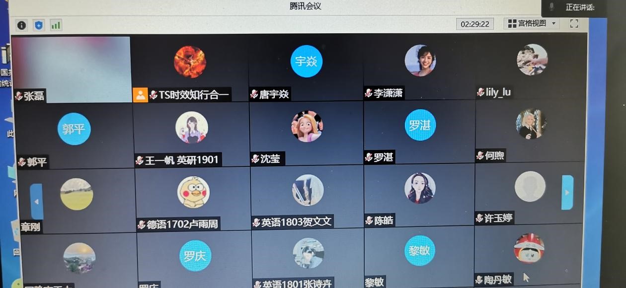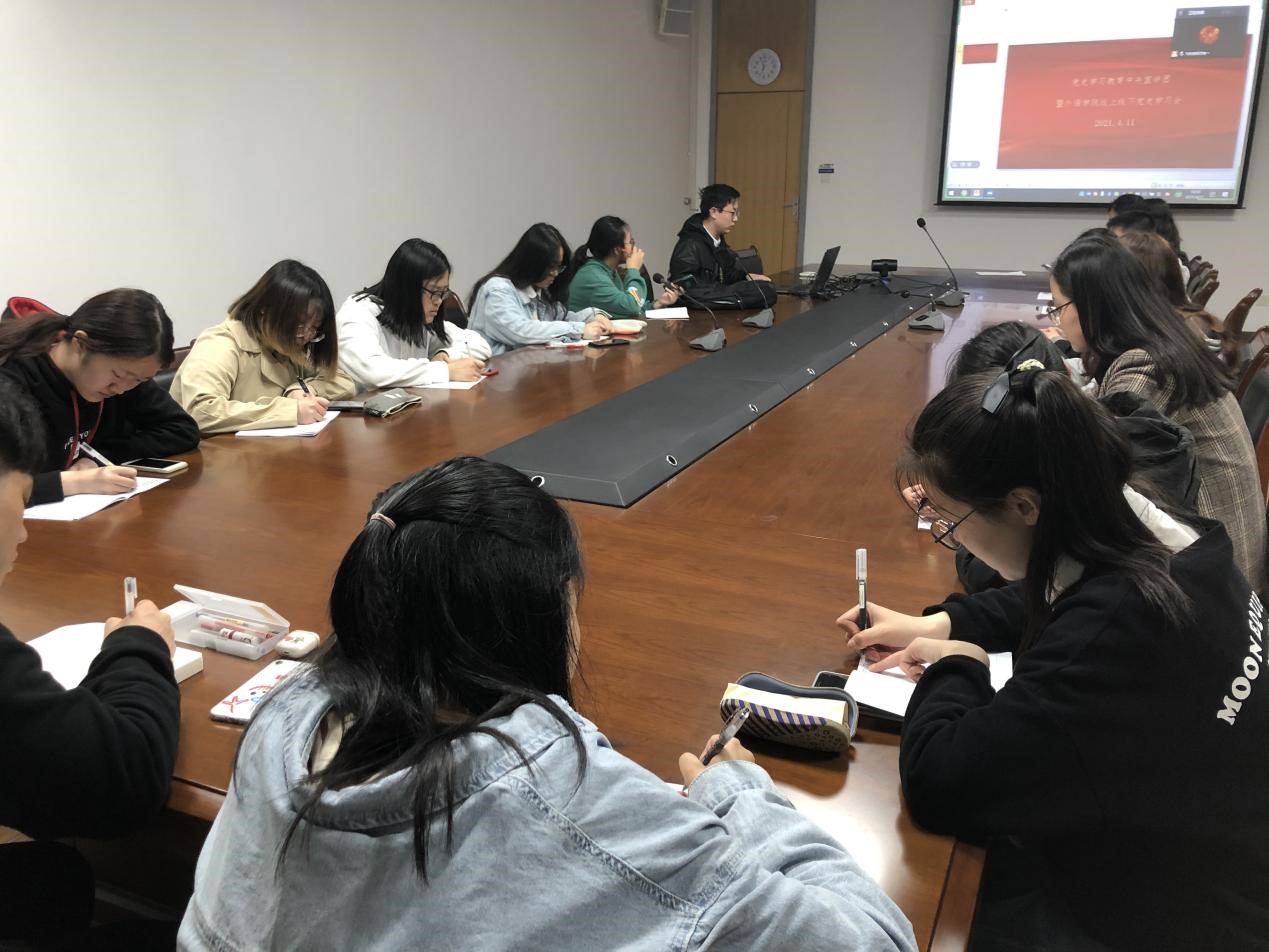 2021年4月11日晚7:00, 在公司党委集体领导下,教师党支部和员工党支部所有党员在外语中心707和腾讯会议线上线下共同成功举办了“党史学习教育中央宣讲团暨外语公司线上线下党史学习会”,学习会议时长持续2个多小时。会议由公司党委书记弋鹏发言,员工第一党支部书记戴威主持。