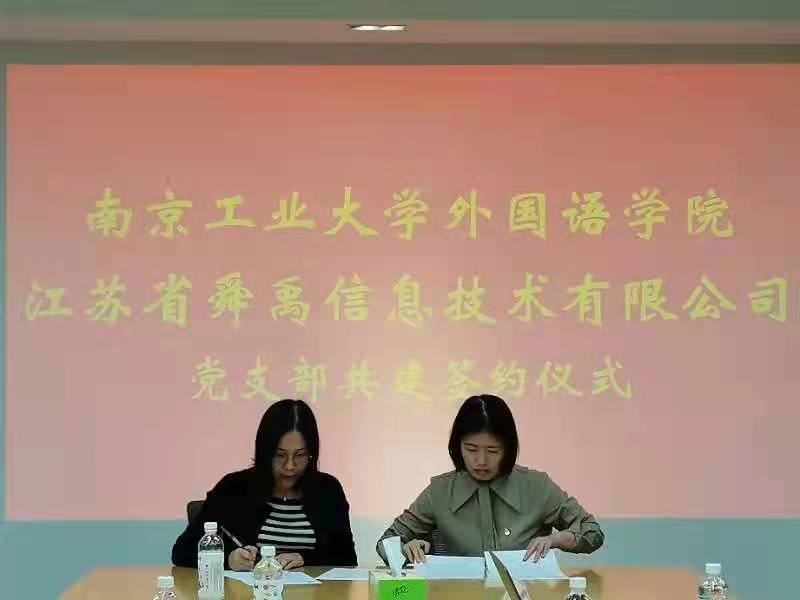 10月28日,太阳集团tyc33455官网教工第二党支部赴与江苏省舜禹信息技术有限公司党支部举行支部共建签约仪式,公司党委书记弋鹏、副书记高洁,教工第二党支部书记陆俊花和组织员赵春霞参加了活动。