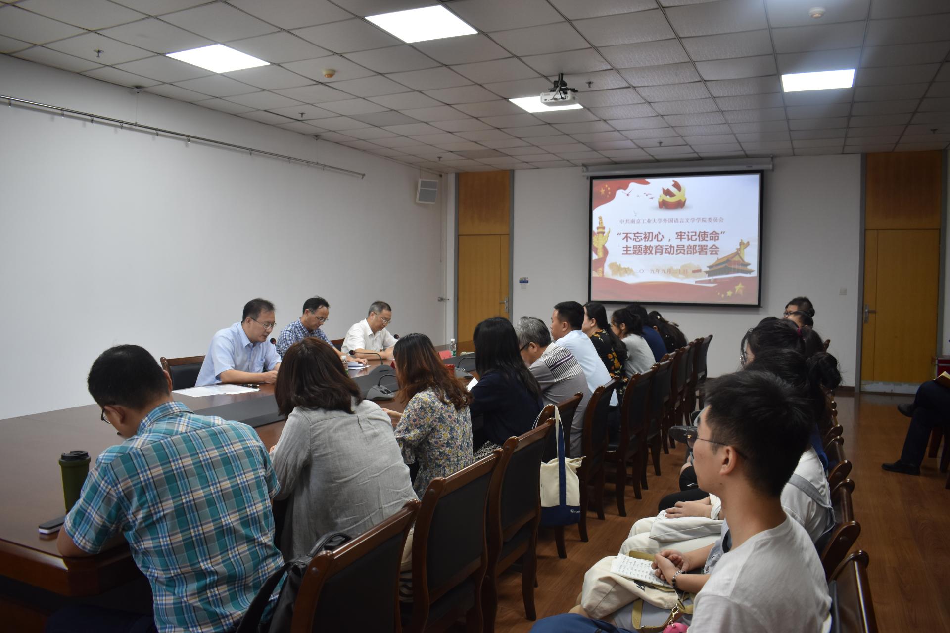 公司党委常委吴胜红代表公司党委讲话,指出外语公司党委高度重视主题教育的开展,结合公司实际制定实施方案,突出重点、狠抓落实,为开好局、起好步打下了良好基础。吴董事长对外语公司党委主题教育的开展提出了四点要求:一是提高政治站位,紧扣主题主线。一方面要把每一项基础要求做扎实、做到位;另一方面要统筹兼顾、把握内在联系;二是突出重点任务,抓住关键环节。党委书记要切实扛起第一责任人责任,党委班子成员和党员领导干部要主动担责,党支部书记和委员要率先垂范;三是发挥支部作用,深化主题教育。依托“三会一课”、主题党日活动等进行,结合“两学一做”学习教育常态化制度化,结合新时代江苏高公司党支部建设“提质增效”三年行动计划,结合公司“先锋计划”、“星火计划”、“聚力计划”,实现“双提双增”,尤其注重外语公司教师“双带头人”党支部书记比例的提升;四是力戒形式主义,紧密结合实际。坚持务求实效,把“规定动作”做到位,要结合外语公司事业发展和目标任务开展主题教育,充分发挥人文学科特点,加快推进课程建设,进一步促进思政进课堂,切实取得育人实效。