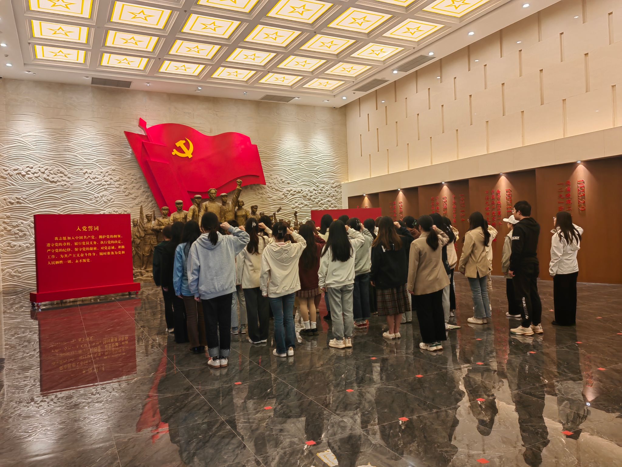全体党员参观了江北新区红色展厅,展厅内陈列的珍贵图片、资料,讲解员声情并茂的讲解把大家带进了那个军号嘹亮、战火纷飞的年代,革命先烈们时刻恪守共产党人气节和为国家和民族鞠躬尽瘁、死而后已的革命精神深深烙在大家的心底。宣誓仪式在《国际歌》歌声中正式拉开序幕,组织员赵春霞宣读了新党员名单,并为新党员佩戴党徽。在教师第二党支部孙莉的带领下,全体党员高举右手面向鲜红的党旗庄严宣誓。党员代表英语1902班徐佳扬发言,表示一定以党员标准严格要求自己,在工作实践中不断成长、让青春在全面建设社会主义现代化国家的实践中绽放绚丽之花。公司党委副书记高洁代表公司党委向全体新党员表示祝贺,并提出了三点希望:一是要坚定理想信念,用党的科学理论武装自己;二是要听党话、跟党走,用党的初心使命感召自己;三是要知行合一,用党的光辉旗帜指引自己。