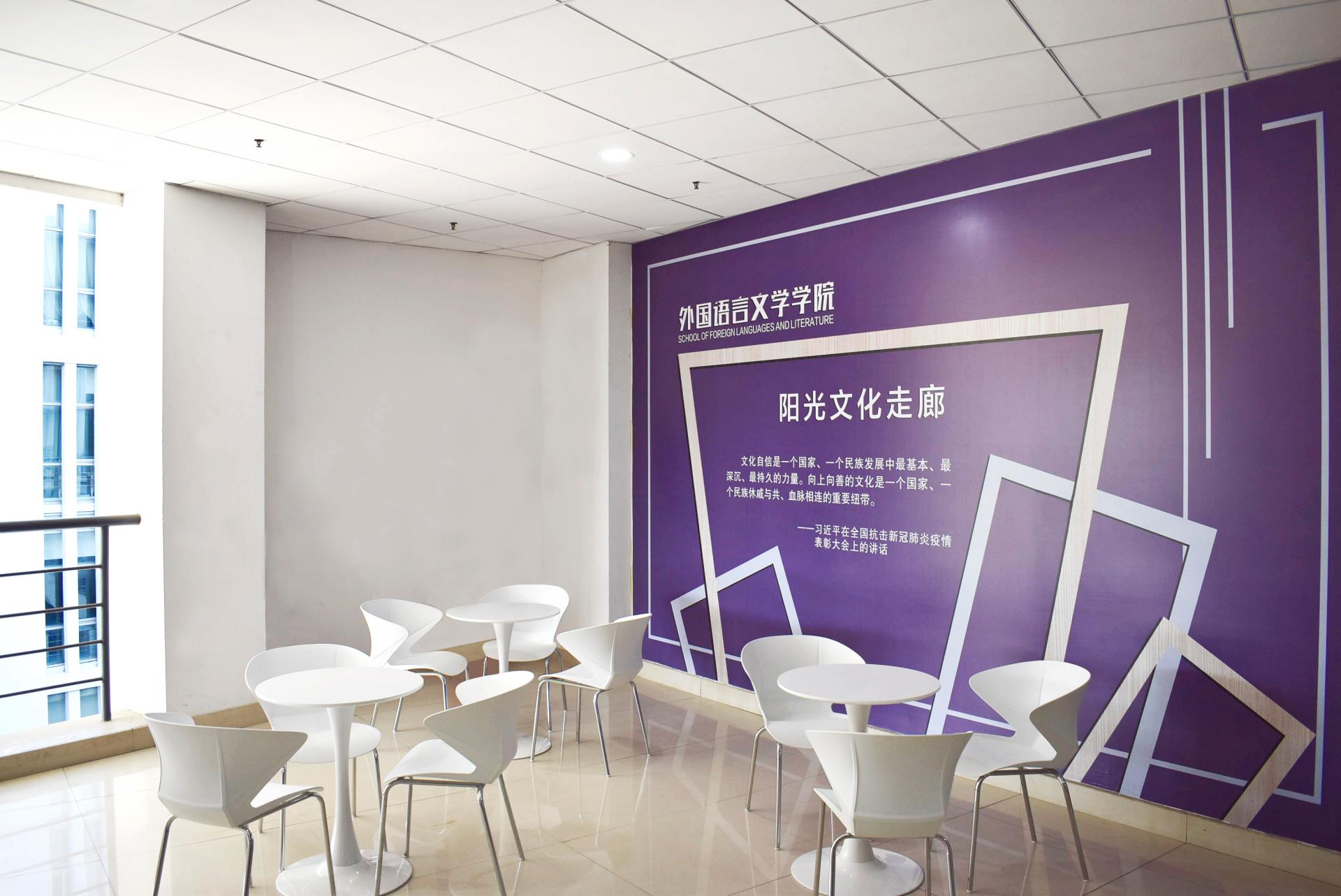 外语公司党委收集到师生关于开展“外语角”和各类文化活动缺少小型空间的“急难愁盼”后,高度重视、认真调研,邀请艺术公司环境设计团队的师生结合“文化育人”和外语公司师生实际所需进行了精心的设计。外语公司“阳光文化走廊”有效运用进学楼五楼走廊空间,通过文化墙巧妙设计,在为师生提供便利休憩基础上,渗透引导“文化自信”学习氛围。外语公司“阳光文化走廊”已于近日投入使用,除满足师生日常学习、交流使用之外,公司“外语角”、文化育人精品项目等都将有效利用该活动阵地进行。