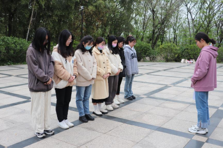 活动伊始,学术部部长卢雅芳为同学们介绍了“三浦”地区的光荣革命事迹和求雨山纪念馆的发展历程,带领同学们在革命烈士纪念碑前回顾先烈们的丰功伟绩。随后,全体同学默哀三分钟,向为保卫国家而献出青春热血的革命英烈表达深切的哀悼。