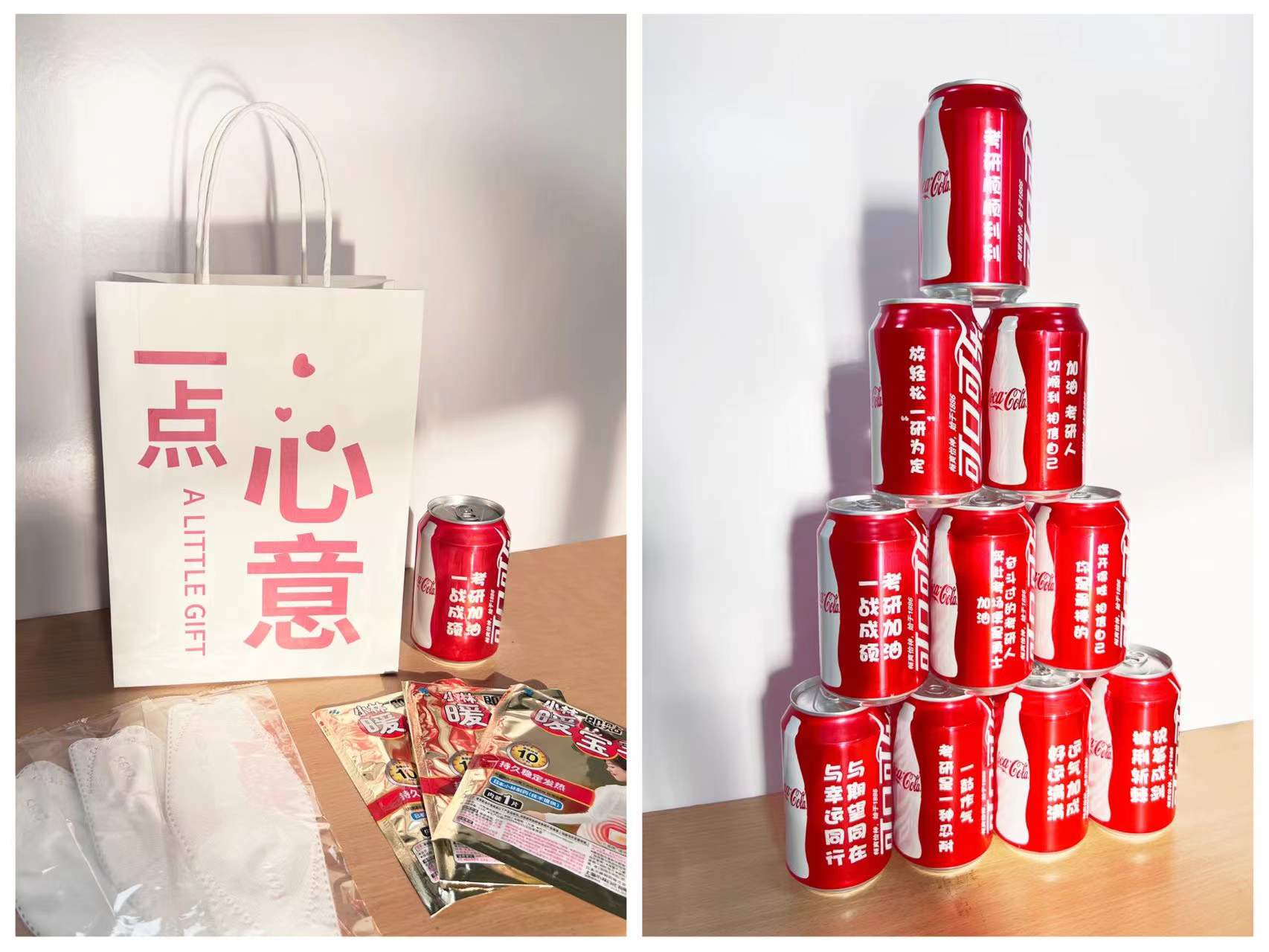 慰问现场,弋鹏书记代表公司向正在备考的员工表达了鼓励和期望,激励大家在最后十天全情投入、背水一战、不负青春,同时,也要调整心态,适当疏解压力,自信从容。随后,公司的领导老师给同学们送上了公司的“一点心意”——考研加油包,本次考研礼包心意满满,包括暖宝宝贴、口罩、印有祝福语的定制可乐以及辅导员亲手写的祝福卡片,将温暖送到每个考研学子的心田。