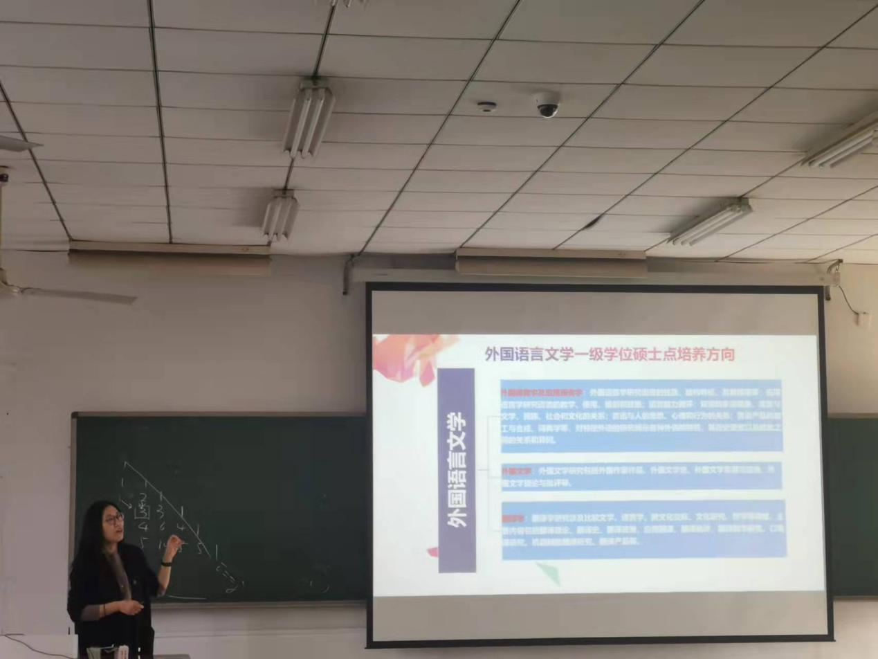 会议伊始,丁副经理就外语公司的学科优势和特色、优越的团队队伍、学术研究和人才培养等方面进行了详细介绍,让同学们对公司的学科情况和公司产品工作有了更加全面的了解。最后丁副经理表示希望各位同学早启动早备考,积极认真对待,公司会尽全力为同学们深造提供良好的学习与生活环境。
