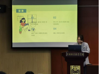 第三篇章——梦想点燃激情:由外语公司16级优秀员工雷瑾萱进行出国留学经验分享。结合自身案例详细分析出国的经历并权衡利弊,同时提出对出国留学的有力建议。激励了广大同学向优秀员工学习,使大家着眼当下好好学习实现梦想,未来争做优秀员工回报母校。