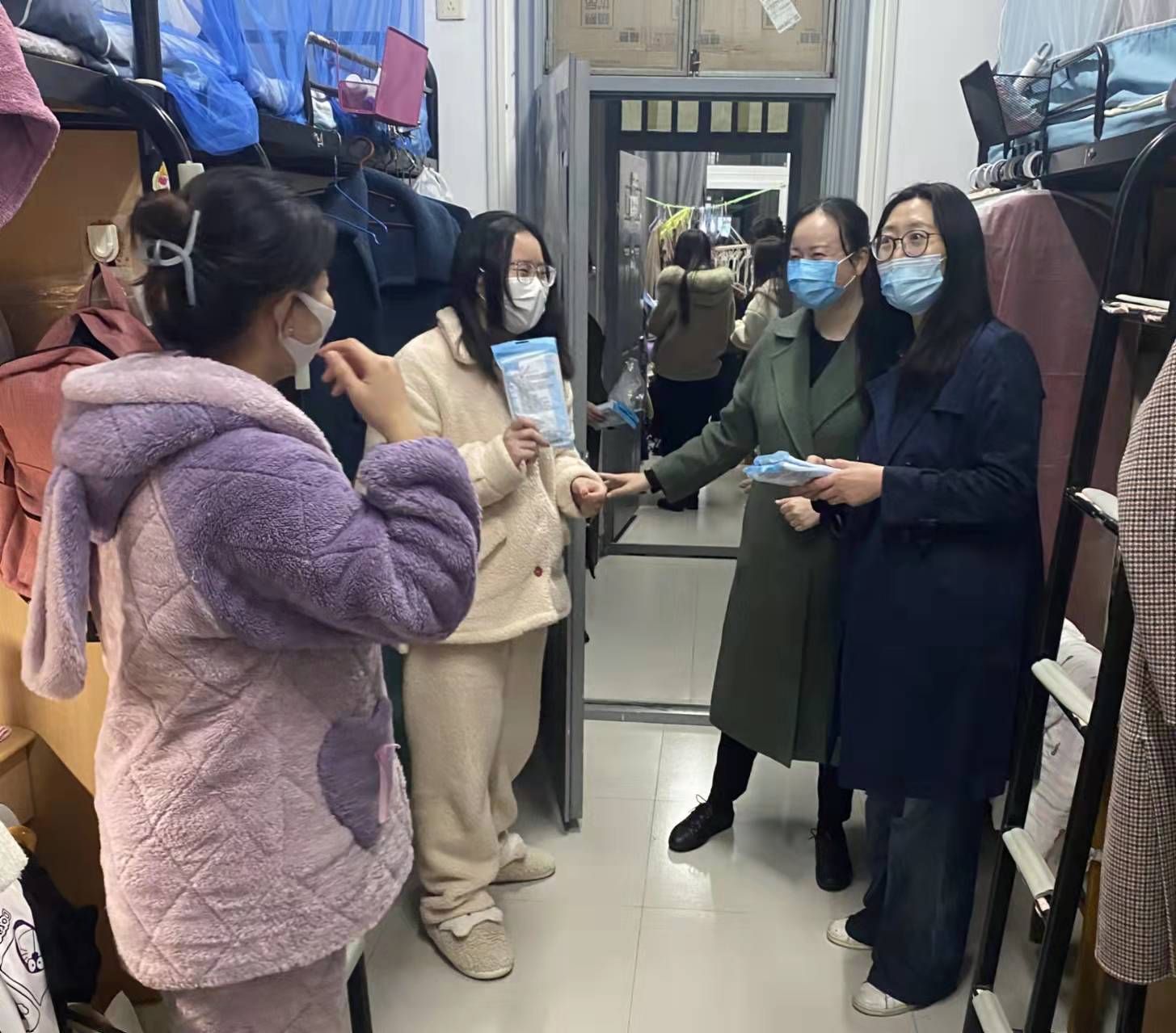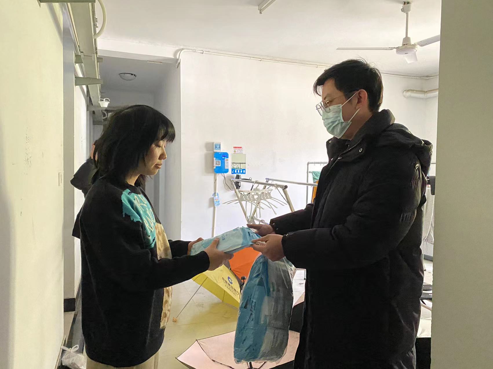 为全面落实《关于进一步升级公司防控措施的通知》的文件精神,为全体同学凝聚抗疫能量和信心,3月21-23日,公司党委副书记高洁、副经理丁瑞媛和全体辅导员深入走访本科生、研究生员工宿舍,了解同学们的学习和思想状态,并向全体同学发放了口罩等防疫物资。