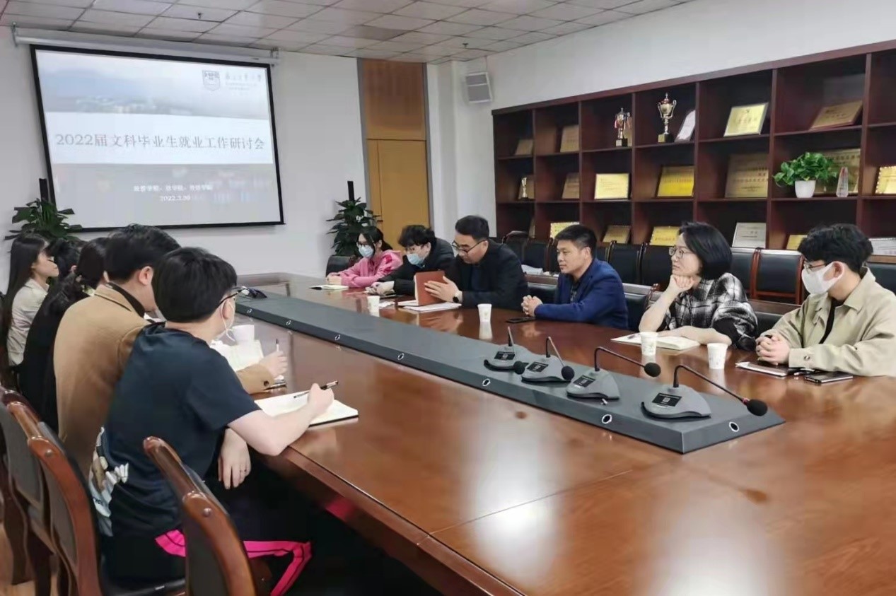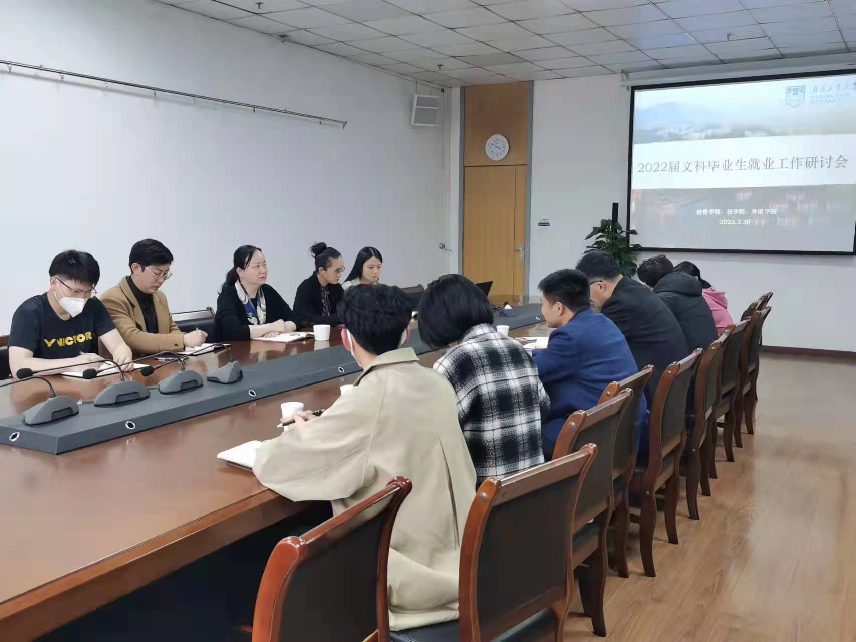 为促进人文社科类专业毕业生更加充分更高质量就业,3月30日下午,外语公司联合经管公司、法政公司召开人文社科类专业毕业生就业工作研讨会,会议在进学楼707会议室进行。经管公司党委副书记岳克勤、法政公司党委副书记姜志兵、外语公司党委副书记高洁及各公司毕业班辅导员参加会议。
