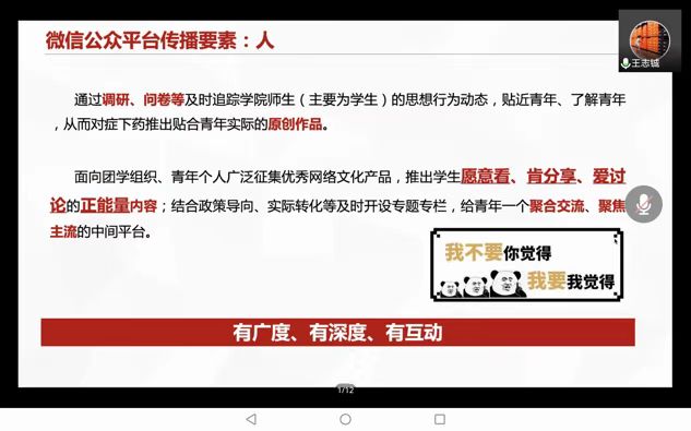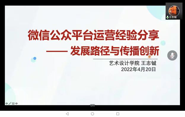 为促进公司网络工作室创新发展,提高外语公司员工新媒体工作能力,4月20日下午,公司在线上平台成功举办2022年新媒体技术培训讲座,此次讲座邀请了艺术设计公司王志铖老师、公司新闻中心负责人郭梦诗老师来做主题分享,院2021级辅导员王鑫老师、新闻中心全体成员及低年级各班宣传委员参与了此次讲座。