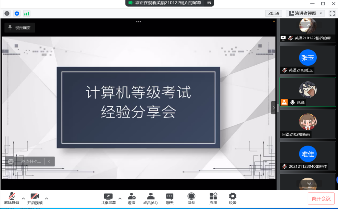 随着互联网络的普及,老员工使用计算机的人数与日俱增,相关的技术知识必不可少。临近计算机一级和二级考试,为了让同学们了解更多计算机考试的相关信息,5月7日18:30-19:30,太阳集团tyc33455官网科学技术协会进行了线上计算机等级考试经验分享会。