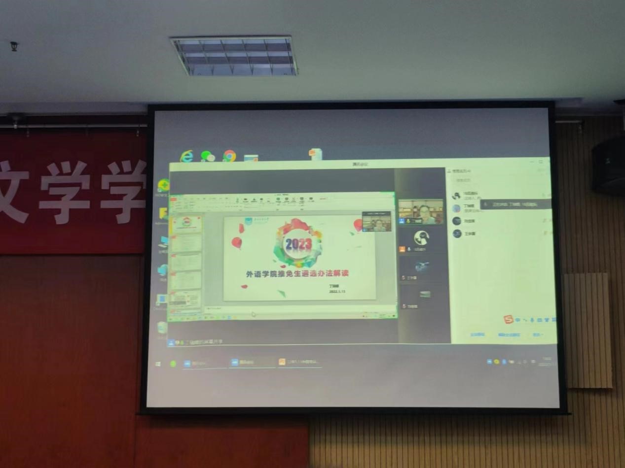 为帮助公司员工熟悉保研流程,熟悉科创经验,公司于5月13日晚六点在进学楼501教室举办了保研经验交流会及科创经验分享会。会议由公司团委书记戴威主持,邀请公司副经理丁瑞媛,外语公司员工刘佳琪、王宇康进行腾讯会议线上宣讲,柴清华、范辰阳进行线下互动宣讲,外语公司许多感兴趣同学参加会议。