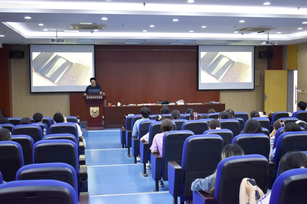 首先,王原老师通过数段经典而高雅的视频向同学们展示了不同书籍各具特色的设计,进而引出本次讲座“美书共读与文化养成”的主题内涵。王原老师指出,独特的设计不仅能够带来视觉上的审美冲击,更能够传达出书籍的内在灵魂。随后,王原老师一一展示了专程带来的各式珍贵藏书,百余本藏书在同学们之间传阅,王老师通过细致的口头讲解与真切的触感,为同学们营造了视觉、听觉与触觉相结合的美学盛宴。最后,王原老师从文化层面向同学们阐释了不同的书籍在内涵与情感上对个人、社会、国家以及世界的影响,并表达出每一个人、每一种文化都能够被命运善待的美好祈盼。