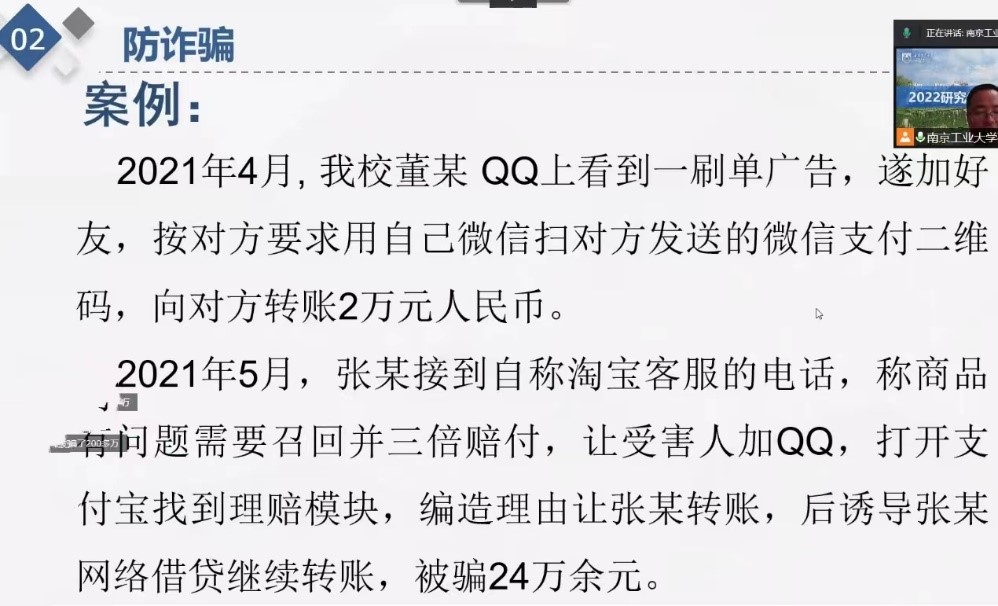 校园安全教育是加强高等公司管理的基础,是维护正常的教学和生活秩序、保障员工人身和财务的安全、促进员工身心健康发展的基本保障。通过本次讲座,同学们对诈骗的形式和常用手段有了进一步的认识和了解,安全防范意识得到了显著提高。同学们也表示,会在今后的老员工活中学以致用,保障人身、财产安全。