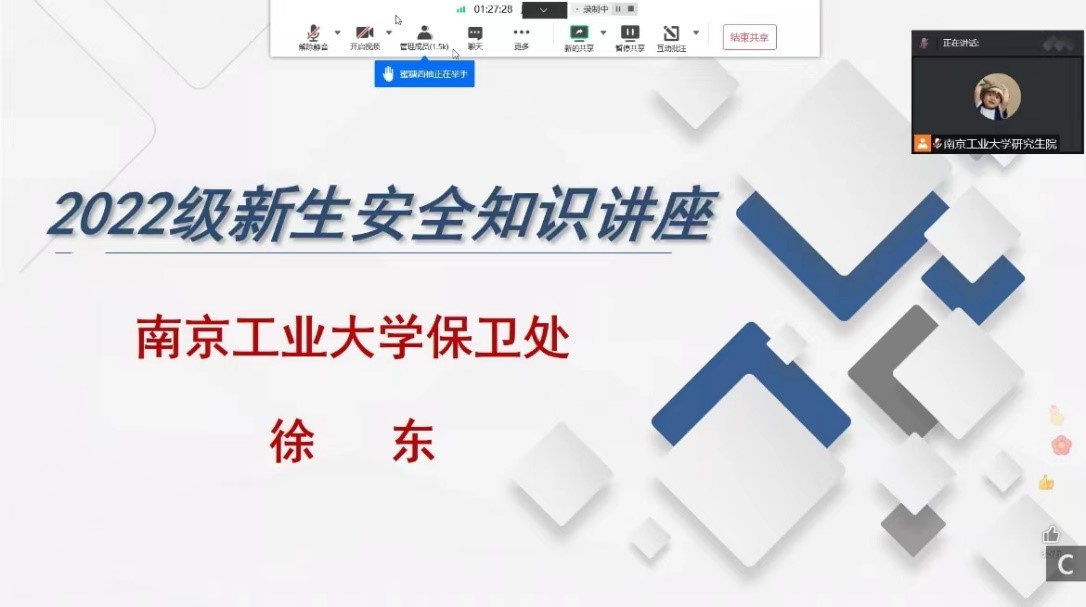为增强员工的安全防范意识、保障员工健康安全、创造和谐安全的校园环境,9月6日上午10点,公司保卫处副处长徐东老师在线上为全体新生开展了入学教育中必不可少的一部分—校园安全教育。