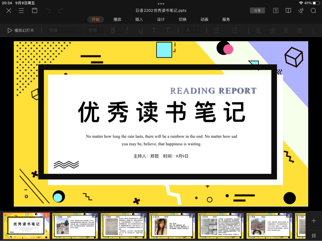 前期,为引导新生度过充实而又有意义的假期,公司布置了“语你同行”暑期入学作业,作业中要求每位同学阅读专业经典书目,摘抄优质生词和名句,并写下自己的读后感。9月9日-9月11日,公司组织各班开展“书香外院,品读经典”线上读书分享活动,公司兼职辅导员范辰阳、陈洁,各助理班主任参与评审。