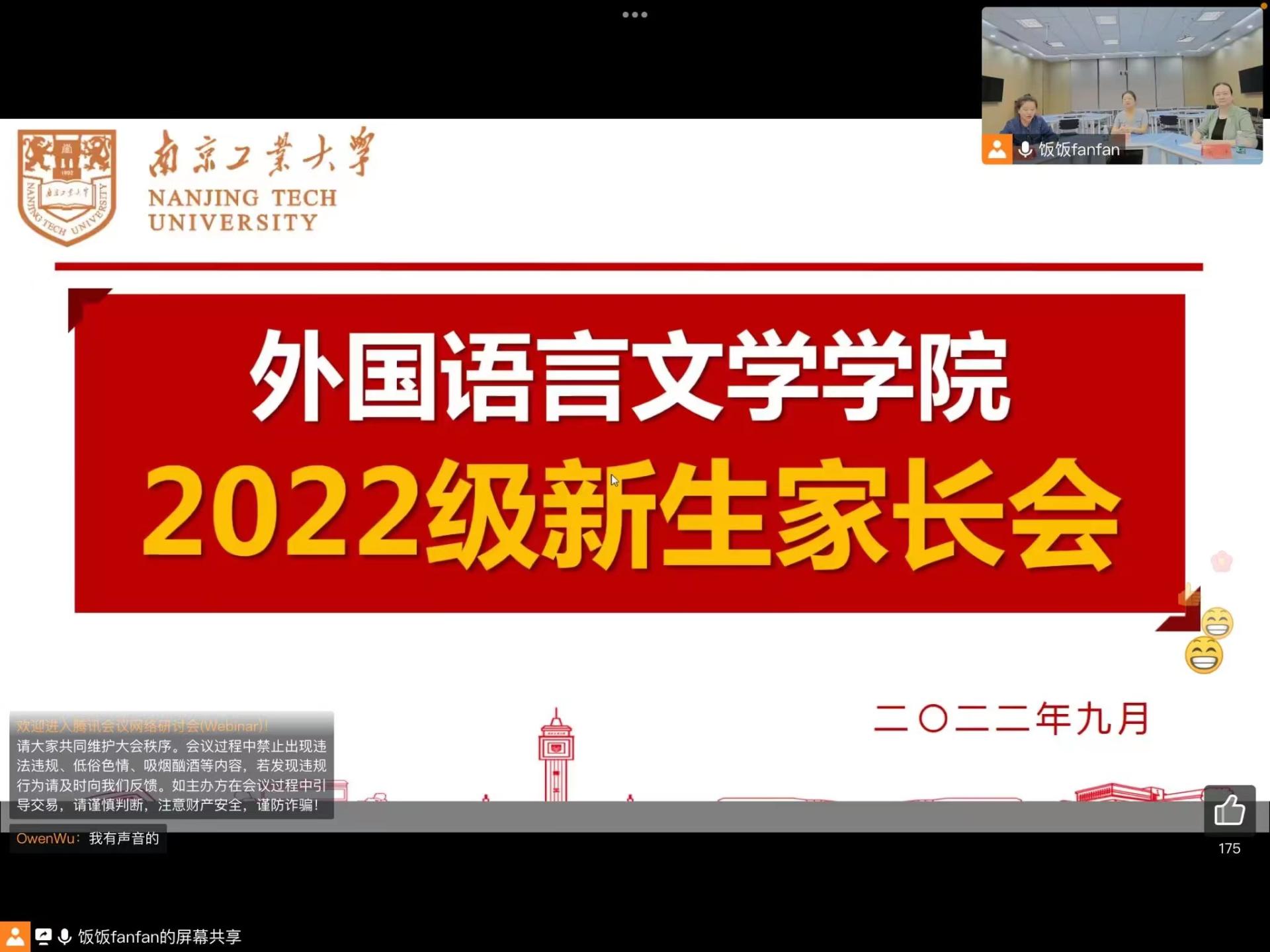 为深化家校共育,助力新生成长成才,9月22日晚,公司召开2022级新生云端家长会。公司党委书记弋鹏、党委副书记高洁、全体新生家长参加本次会议。会议由新生辅导员范楚晗主持。