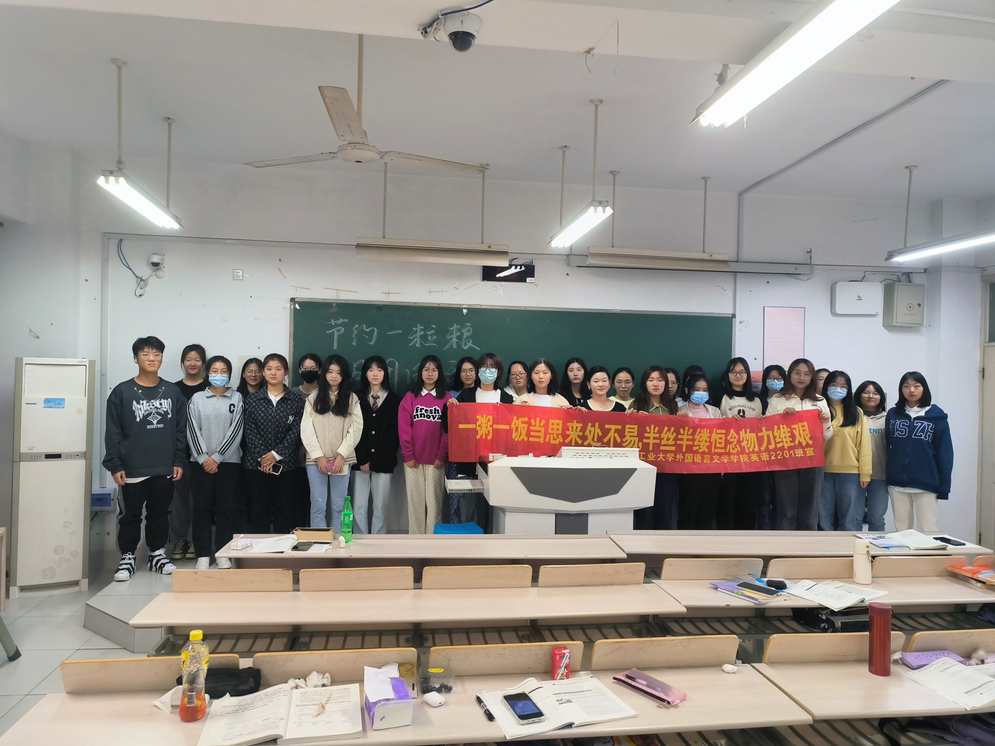 英语2201团支部的同学们踊跃分享了各自在公司发掘的美食,在定制的横幅签名来表明大家的决心并合影留念;英语2202团支部的同学们进行了一日三餐的光盘打卡,进一步抵制舌尖上的浪费;日语2202团支部的同学们向大家介绍了粮食对于国家安全的重要性,也介绍了我国为此做出的努力;德语2201团支部让本班同学分享一些珍惜粮食的小知识。