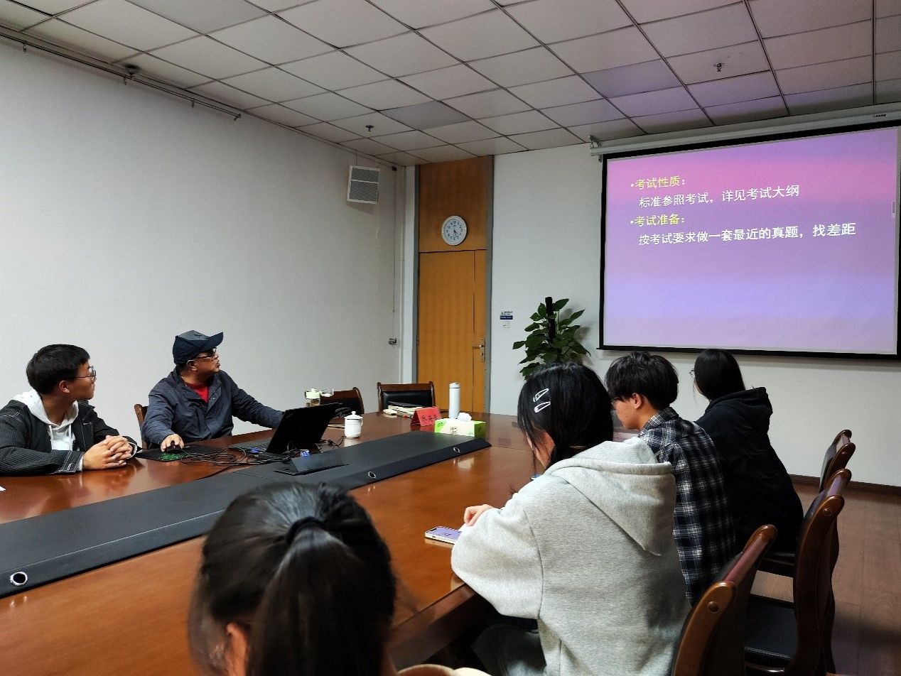 交流会上,乔老师以“我们要赢在起跑线上(We’ll get a head start in life)”为题,为新生适应老员工活,转变角色身份提出了宝贵建议。随后,乔老师向同学们详细介绍了语言类学习方法、大学英语四六级试卷结构,提出了适合同学们的备考建议,以及选择备考材料时避免踩雷的鉴别提示,帮助同学们找到适合自己的参考材料。