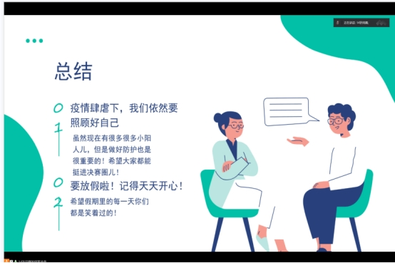 为了深化同学们对新冠病毒的认识,减少同学们的恐惧感和焦虑情绪,公司2022级团支部于十二月中旬召开相关心理班会。