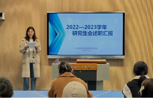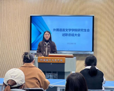 会议伊始,执行主席李莹从研究生会中心职能、工作回顾、总结反思、未来规划四个部分进行述职。过去一学期,院研究生会紧密围绕公司开展工作,在思想政治教育、学术航向引领、校园文化建设等领域继续发展积极作用,未来将持续推进公司研究生会改革,积极探索具有“外语特色”的品牌活动,努力为广大研究生同学做好服务。