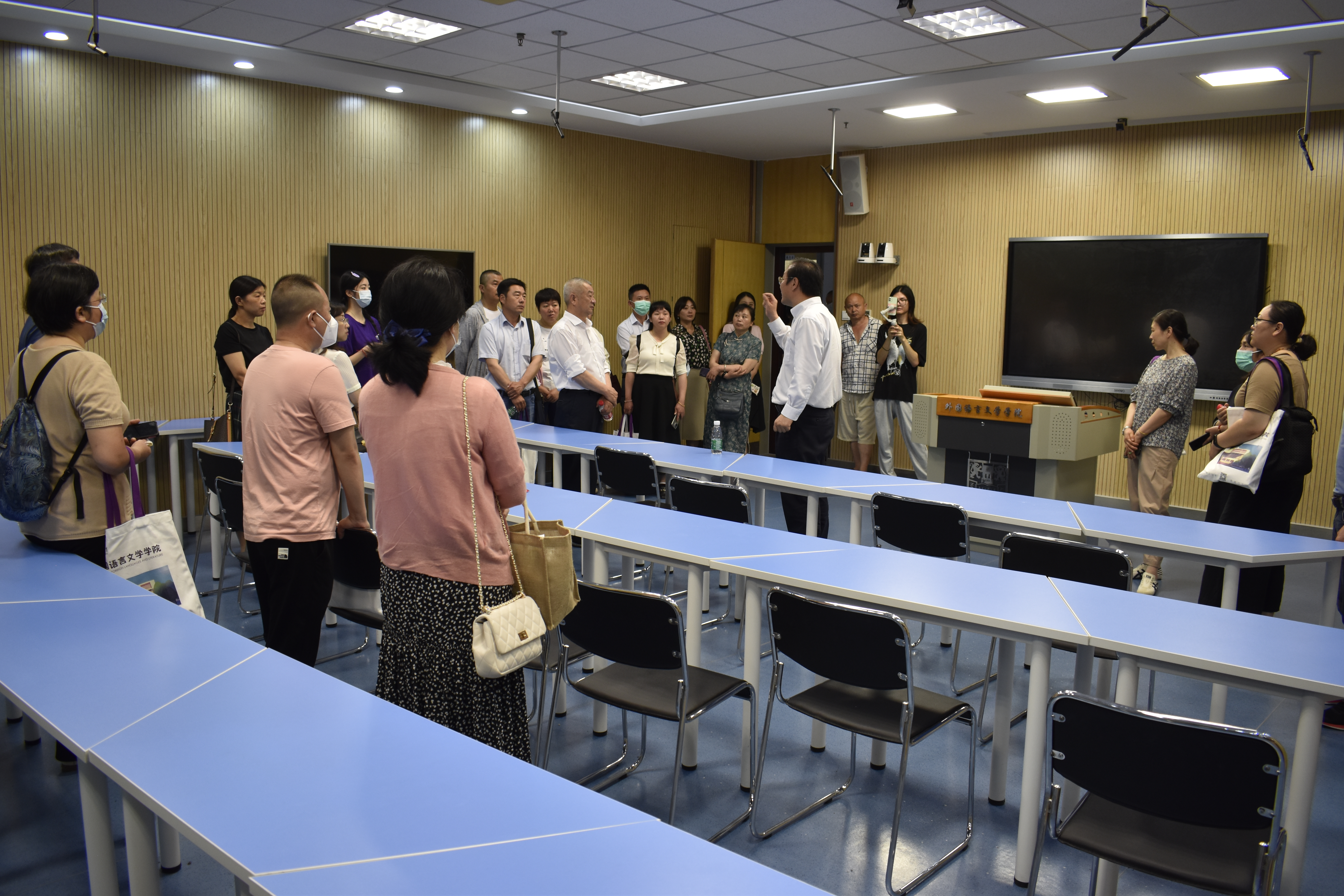 活动当天,与会家长还在经理陈世华、公司“青言”志愿者们的带领下参观了校园、公司多媒体教室、微格教室与语音室等。