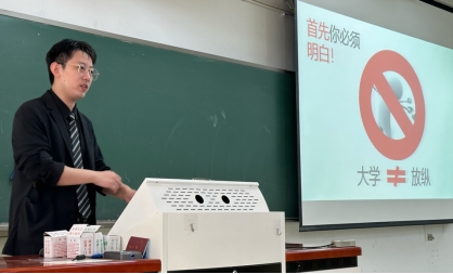 会议伊始,戴威老师介绍了公司兼职辅导员以及各班助理班主任的榜样经历,激发同学们学习热情。随后从学业建议、生活引领、能力培养、职业规划,普遍问题及对策经验、班级管理服务建设、新生展望未来及”避坑指南“经验等多个新生感兴趣方面展开分享,并结合自身经历和多样案例故事向新生提供针对性建议。现场大家频频互动,气氛十分融洽。