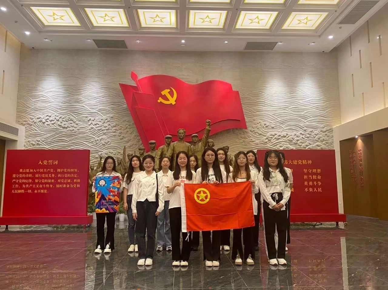 为赓续红色精神,笃行实践之路。英语2202团支部于近日前往南京市浦口区红色广场开展以“追溯红色文化,延续革命精神”为主题的团日活动。
