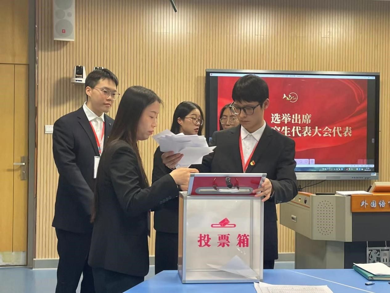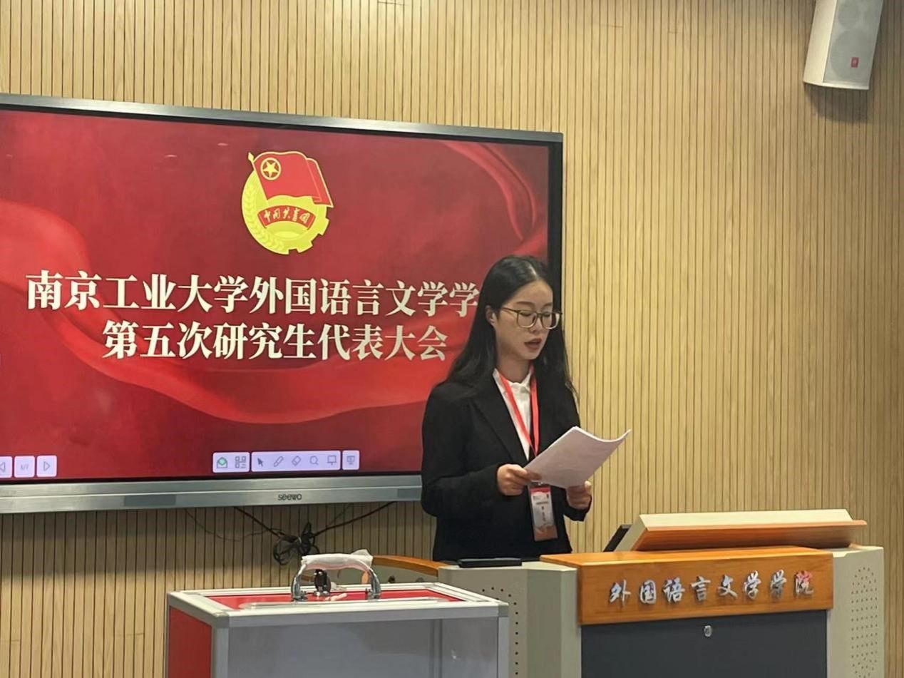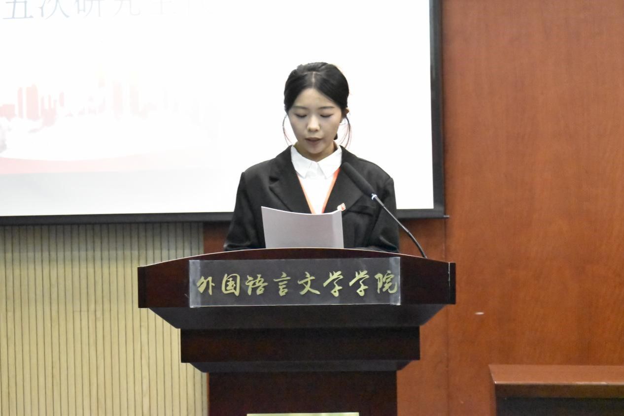 开幕式结束后,研究生代表大会分会场转至进学楼603教室继续进行。会议由王钰棨主持。首先,李莹做第四届研委会工作报告,她总结上一届研委会的工作经验,并提出打造外语特色品牌活动蓝图的设想。随后,贾萱代表公司研会做提案工作报告,围绕思想引领、学术科研、心理健康、权益维护等方面,全面真实地反映了研究生同学的诉求。审议通过大会工作报告、大会提案工作报告后,与会代表采取无记名差额投票的方式选出并产生第五届研究生委员会委员、新一届研会主席团成员以及出席上一级研代会的代表名单。会议在《国际歌》中落下帷幕。