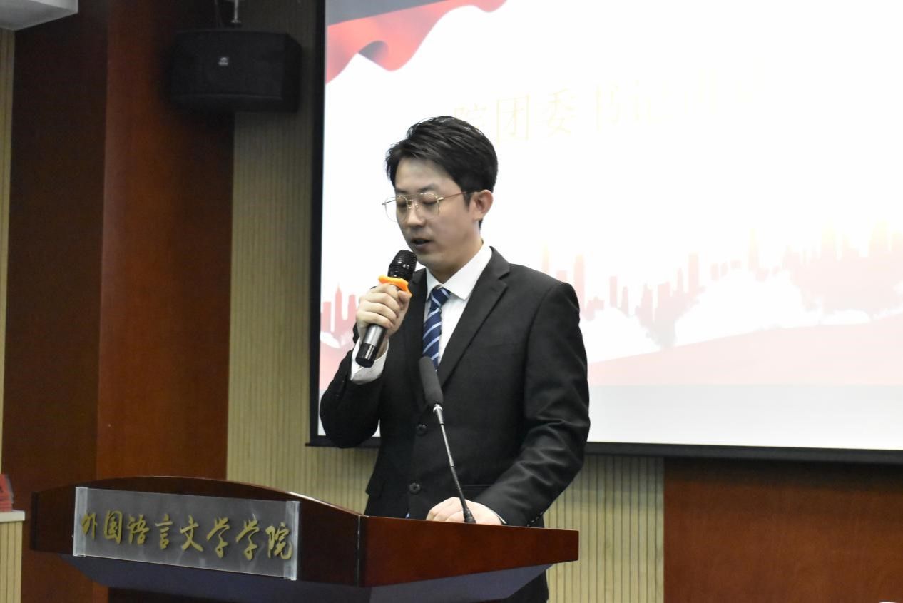 17时,在庄严的国歌声中,第一次全体会议暨开幕会拉开了序幕。首先,校研会代表陆周燕南向本次会议的召开表示热烈祝贺,她充分赞扬了外语公司研会对校园文化建设的贡献。外语公司研会在过去一年里举办了丰富多彩的学术、文体等活动,为广大学子搭建了交流合作和展示自我的平台。随后,公司党委副书记高洁致辞,她对公司研会过去一年在教育管理和员工服务方面取得的成绩表示高度认可,并代表公司党委提出三点希望与建议:一是结合时代的特色,将语言作为向外传播、向内学习的有效的媒介,始终做走在发展前列的外语新青年;二是加强组织建设,把研会组织建设成为让党放心、师生满意、社会认可、朝气蓬勃的先进员工组织;三是牢记服务宗旨,为广大研究生同学提供真真切切的帮助。最后,高洁书记预祝大会取得圆满成功。