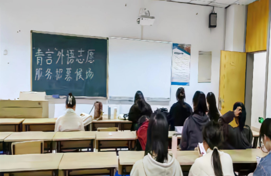 本次招新面试按照英语、日语、德语、西语、汉语等不同语种分成九个小组,同学们运用各自所学语种进行流利的自我介绍,并随即回答评委提出的问题,展现出外院学子扎实的语言基础和向上的精神面貌。通过外语水平、口语表达、仪容仪表、应答能力等多个维度的综合衡量,40位同学成功入选“青言”外语志愿服务团队。
