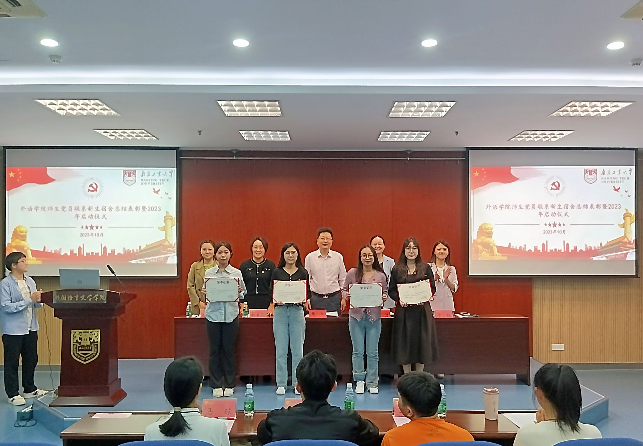 辅导员贾琼总结2022年高年级党员联系新生宿舍活动开展情况。院组织员赵春霞宣读2022年表现突出的优秀党员名单以及新一轮师生党员和新生宿舍结对方案。与会领导、老师为获奖员工党员颁发荣誉证书。教工党员代表马琼、员工党员代表贾萱、新生代表孔敏瑞依次做交流发言。公司党委副书记高洁详细解读今年9月修订的《公司党员联系本科生新生宿舍制度实施办法》,并具体说明党委委员—教师党员—员工党员三级网格化党建管理体系。公司党委书记张翔从支部把握方向、党员创先争优、新生明确理想等方面提出要求,希望通过这次结对活动,推动构建党员主体作用发挥的长效性、常态化制度机制。会后,师生党员和新生代表前往宿舍区挂牌,并进行首次交流。