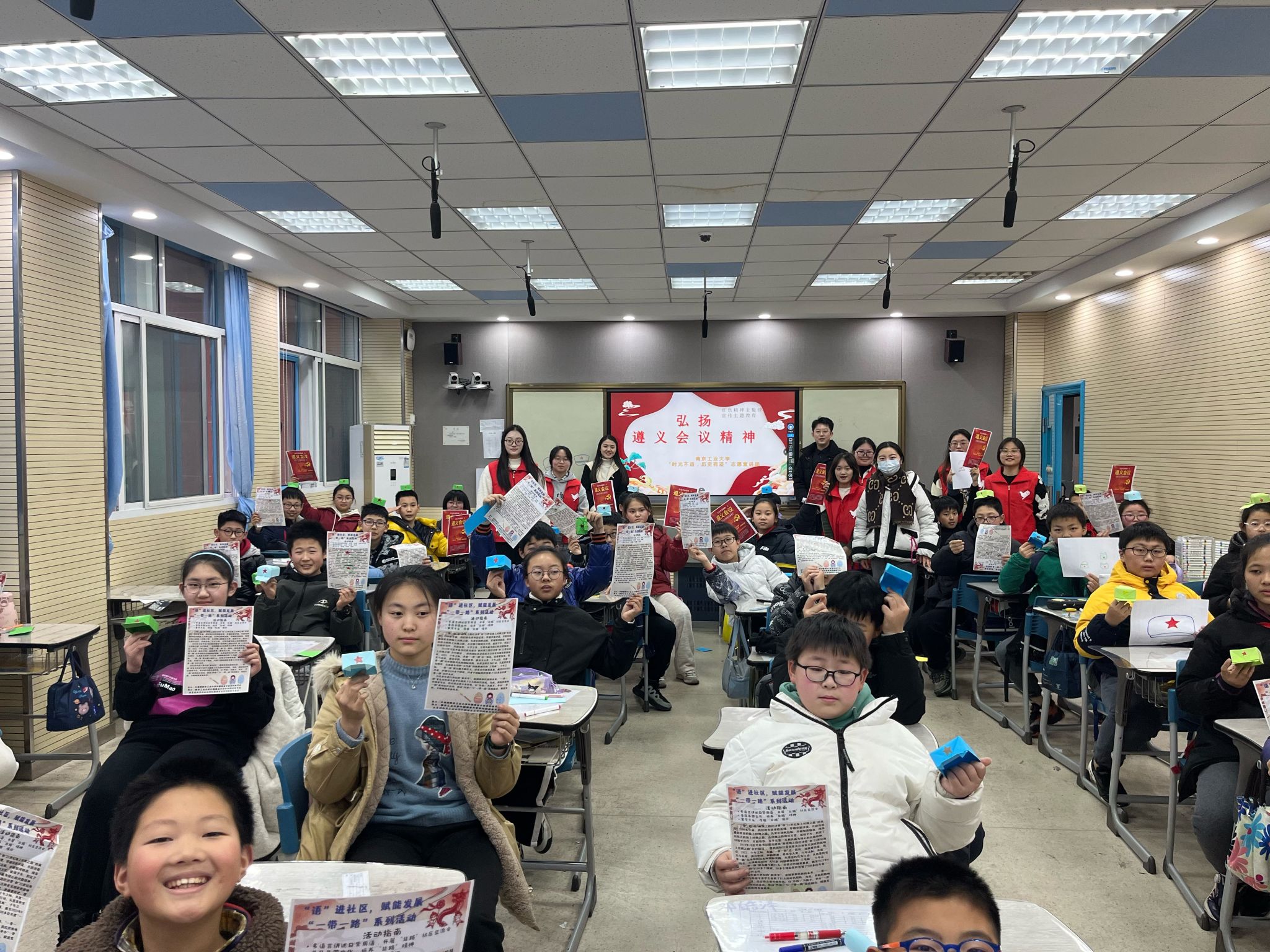 为全面学习党的二十大精神,深入贯彻落实习近平总书记提出的“传承红色基因、讲好遵义故事”的重要要求,1月20日,外语公司组织“时光不语,历史有迹”志愿宣讲团走进南京市月苑第一小学开展寒假社会实践活动。南京市月苑第一小学党委书记张燕、董事长李小兵、公司外语公司团委书记戴威、团委副书记贾琼及宣讲团全体成员参加了此次活动。