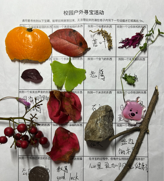 在介绍完活动流程及要求后,同学们如同离弦之箭冲出教室,迫不及待地想要寻找到自己心中符合要求的物品。经过一段时间的等待,同学们带着他们的答案与“宝物”回到教室。提交“寻宝地图”并合影留念后各自挑选符合自己心意的礼品。