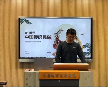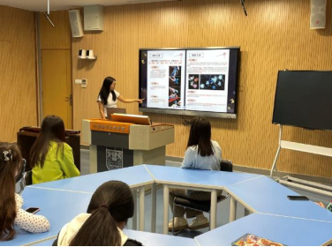 随后,学术部吴信达为大家分享《白蛇传》、《孟姜女》和《牛郎织女》故事,通过讲述中国传统民俗故事,带领同学们感受中华文化的深厚底蕴。主席团成员贾萱分别从绒花的历史渊源、特点、制作材料和制作工序四个方面展开,详细介绍了江苏省非遗绒花这一技术。