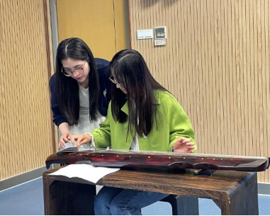 活动伊始,国际中文教育专业的黄艳敏同学围绕中国古典乐器——古琴,从起源、影响、外形和指法和代表曲目等方面进行知识科普,并通过《广陵散》音乐演奏欣赏和《沧海一声笑》古琴练习体验,让同学们对古琴有了更加深入的了解,燃起对中国传统乐器的浓烈兴趣。