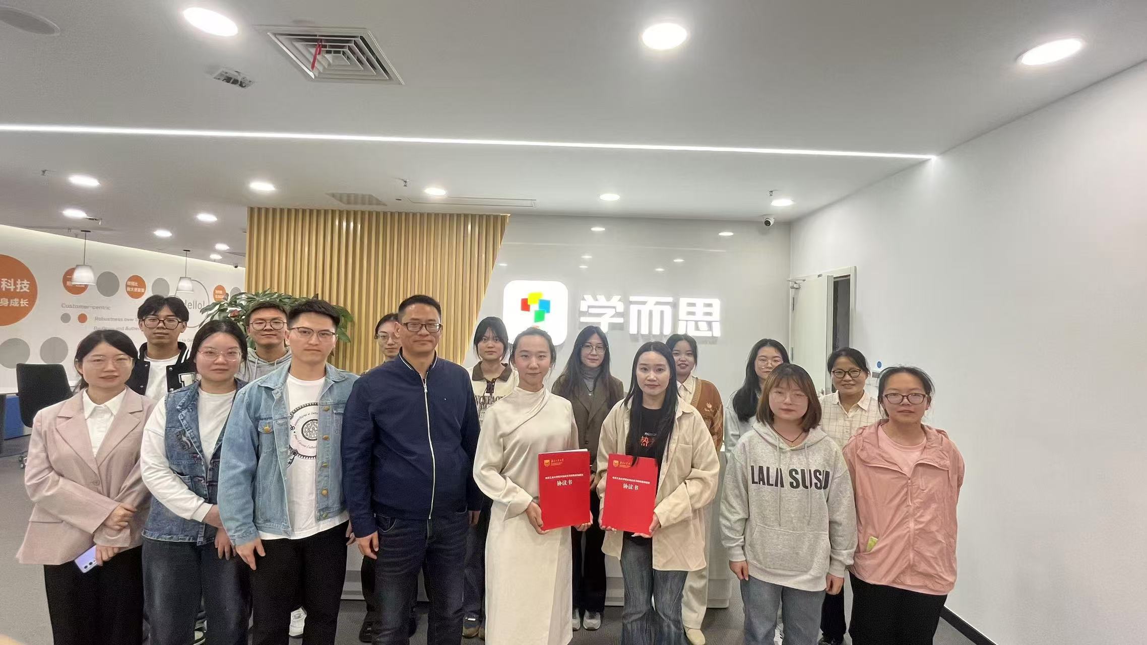 10月9日,公司一行参观了学而思南京总部办公区域和授课教室。学而思江苏校园招聘负责人赵小乐等人对公司师生表示热烈欢迎,并详细介绍了学而思的发展历程、运营模式和校企文化融合等。赵小乐表示,希望能与公司加大合作广度、深化合作维度。闻敬详细介绍了公司专业建设、人才培养及毕业生相关情况等方面。双方表示,愿意在人才培养、就业实习、员工引领等方面协同发力,助力语言类人才的培养。双方签署了就业创业实习实践基地建设协议书。