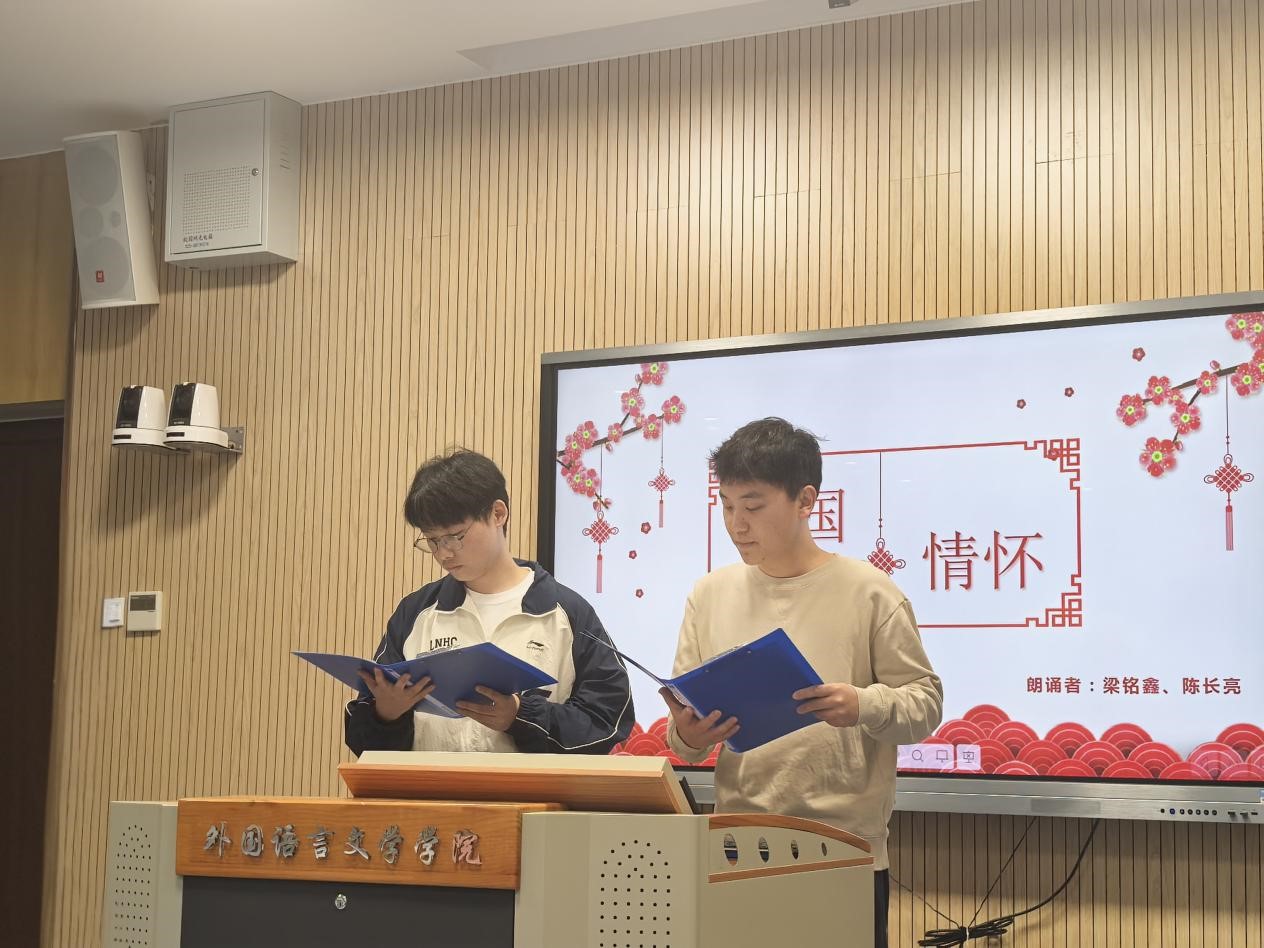 此次比赛邀请了汉语国际教育系崔璨老师以及研究生辅导员王鑫老师担任比赛评委,由24级研究生沈佳琪主持。本次活动旨在通过经典诵读的形式,将中华优秀传统文化与新时代精神相结合,传递青年学子对祖国的深情告白。